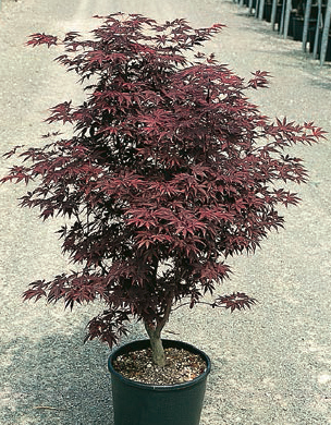Vigoureux,port en globe, branches aux extrémités retombantes. Feuilles rouge au printemps, vert nuancé de rouge et de bronze en été, rouge cramoisi ou orange en automne.